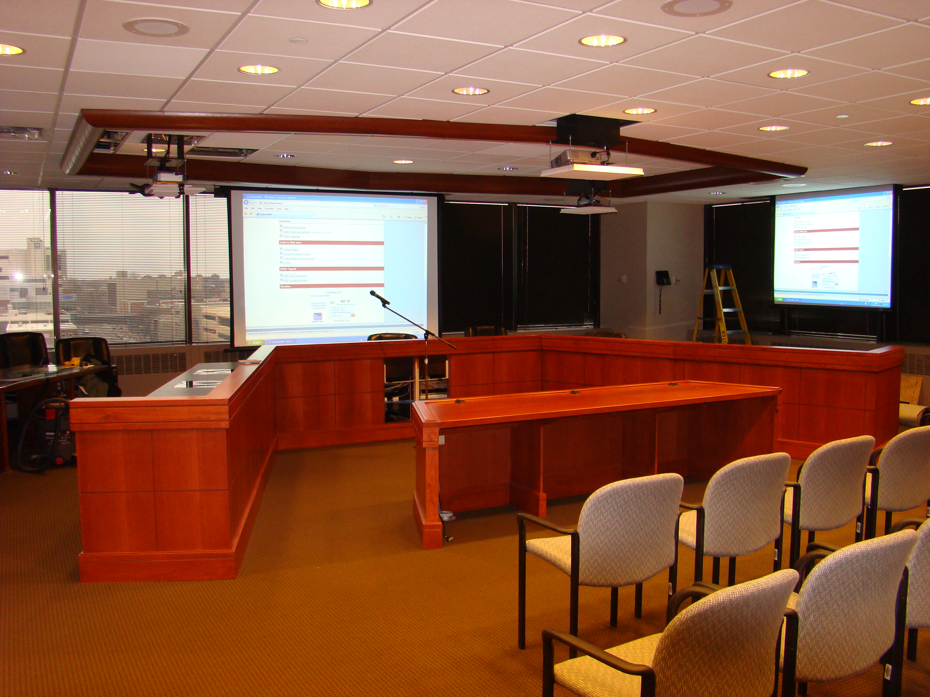 For your business, we offer commercial products featuring the latest technology. We install board rooms, training rooms auditoriums, church sound systems, large electric screens, projectors that drop electronically from the ceiling, sophisticated audio/video systems for teleconferencing or recording equipment can enhance your meetings, conference rooms and training spaces. We can custom design and install a system to your exact requirements.